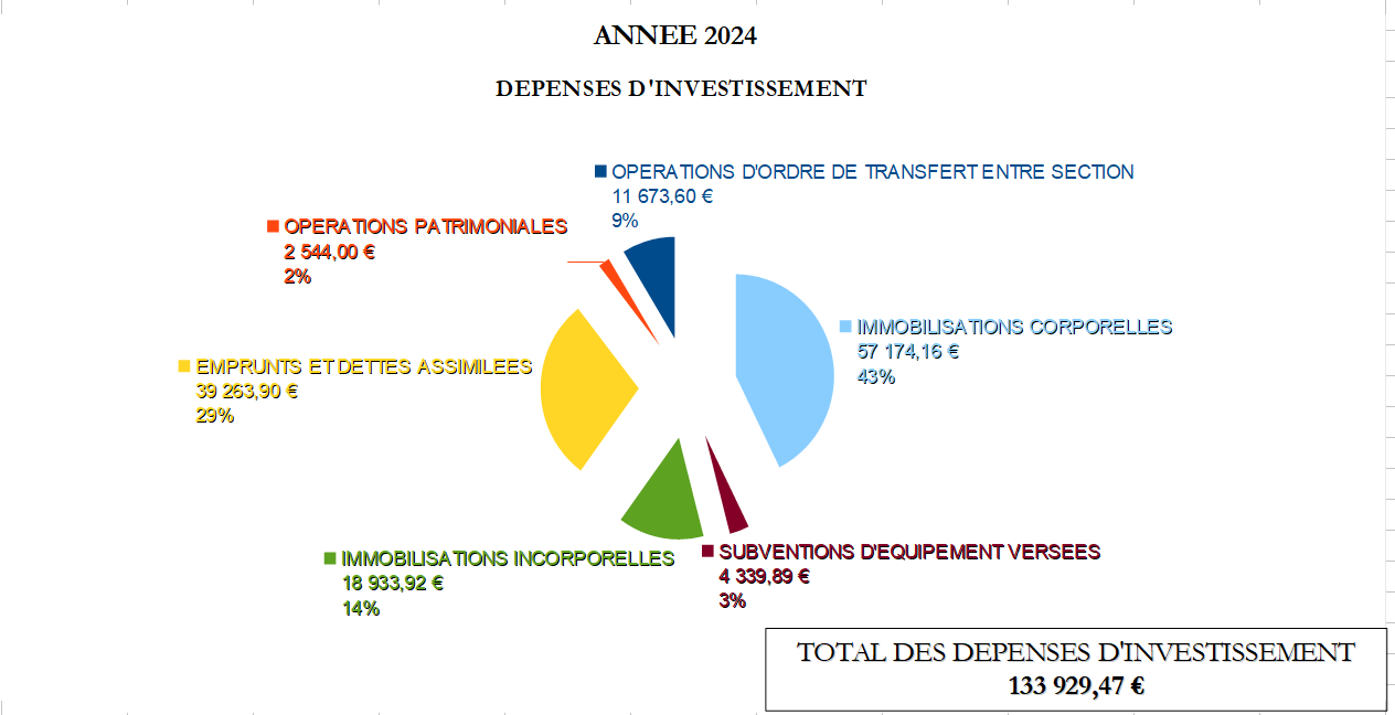 Les dépenses d'investissement sont représentées par le remboursement du capital des emprunts, les différentes opérations programmées pour l'année suivante et non réalisées sur l'année précédente.
